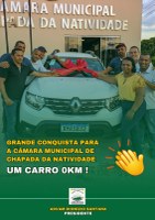 A Câmara Municipal de Chapada da Natividade, Estado do Tocantins, através do seu Presidente, Vereador Advam Dionízio de Santana (Devan de Jovelina), juntamente com os demais parlamentares desta Casa de Leis, tornam público a aquisição com recursos próprios, de um novo veículo para atender as atividades do Poder Legislativo Municipal.